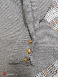 Maglione donna, a collo alto, modello corto, con bottoni dorati sui polsini