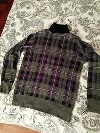 Maglione di lana, a taglio molto originale, Doppio Petto, usata pochissimo e tenuto bene, taglia L/XL, colore grigio e viola con inserti neri.