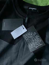 Maglione Dsquared2 nero con stampa grigio scuro, fronte e retro, ancora con etichetta mai usata Taglia M