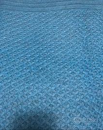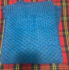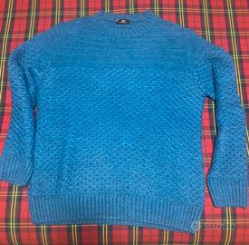 Maglione colore blu con lavorazione nido d’ape a rombi, misura 50.