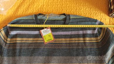 Vendo maglione colore multicolore a righe di marca Etro. Mai indossato ed ancora con cartellino. Regalo causa taglia sbagliata. Praticamente nuovo. Taglia L (veste stretto), girocollo di maglia sottile e girocollo. Buon affari a tutti. Per qualsiasi informazione non esitate a contattarmi.