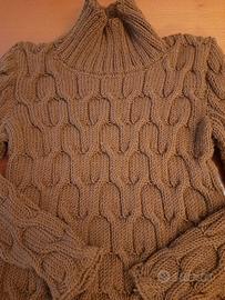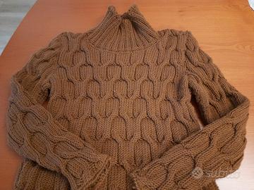 Maglione fatto a mano, in lana irrestringibile, colore cioccolato, taglia 46 Lunghezza 51 cm. Manica 55 cm. Larghezza 45 cm. Mai indossato e mai lavato.