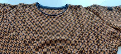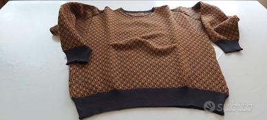 Maglione firmato "Trussardi" 100% pura lana vergine (disegno geometrico colori arancio e grigio scuro; consiglio lavaggio a secco).