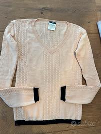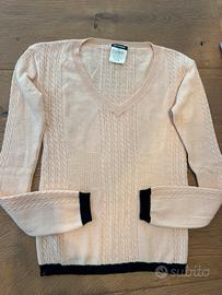 Maglione Gianfranco Ferre’ taglia xs nuovo senza difetti colore rosa confetto con i bordini color nero per info contattatemi sono a vostra completa disposizione e offro massima serieta!