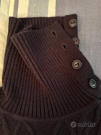 Maglione blu girocollo alto con bottoni laterali, condizioni perfette, mai indossato (è stata solo tolta l’etichetta). Il colore è blu scuro, senza imperfezioni.