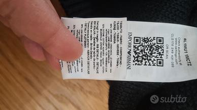 vendo per inutilizzo maglione di Emporio Armani (lana vergine 66% e cotone 30%) blu profondo undossato 2 volte, capo pari al nuovo eccellente stato. Larghezza torace 55cm., lunghezza totale 65cm., manica 53 cm., spalle 58cm.