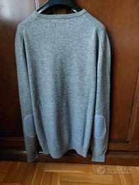 Maglione grigio con scollo a V. Toppe applicate sui gomiti perché rotto sotto. Condizioni discrete. Cashemere
