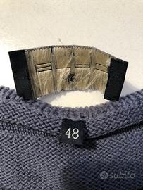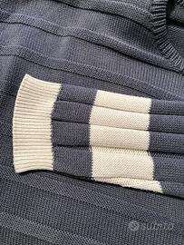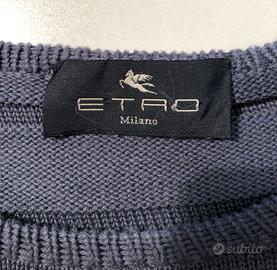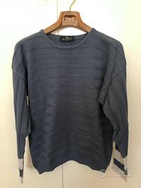 Maglione girocollo in cotone Etro. Colore grigio. Lavorazione a righe del medesimo colore: maglia rasata e rovescio. Sulle maniche riga e polsino color panna. Indossato poche volte, in vendita perché troppo grande. Taglia 48.