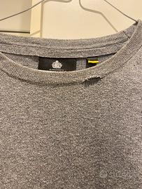 maglione grigio Lyle & Scott, leggermente scucito sul collo.