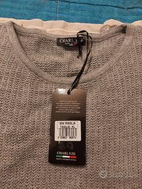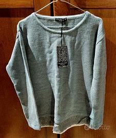 Maglione nuovo, tg. 48, grigio perla, in misto lana, con fondo in pizzo. euro 35
