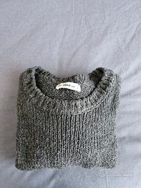 Maglione grigio con maniche lunghe e colletto a girocollo, taglia S, materiali misti, ottime condizioni, vestibilità comoda