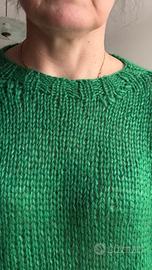 Realizzato a mano,con i ferri, filato pregiato, taglia dalla S alla L, morbido, caldo e leggero, colore verde, composizione del filato 49%alpaca,21%lana,20%nylon, qualità italiana