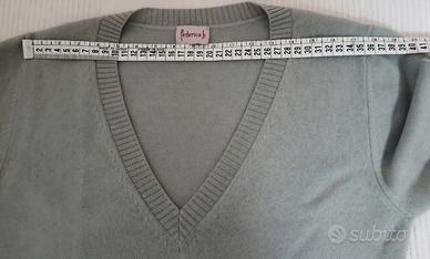 Maglione in cashmere (molto fine e leggero), scollo a V, colore verde menta chiaro. Usato, in ottime condizione Taglia M Made in Italy