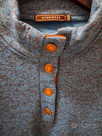 Vendo maglione in felpa uomo taglia XXXL, chiusura al collo con cinque bottoni e toppe scamosciate ai gomiti, colore celeste melange interno felpato molto caldo, nuovo mai indossato vendo per acquisto errato. 10€ No Perditempo per info contattare Paola al 3382052104 zona metro B Pietralata