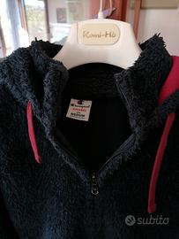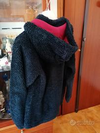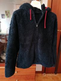 Maglione in pile blu scuro, con cappuccio, tasche e chiusura a zip.