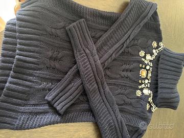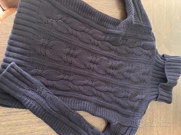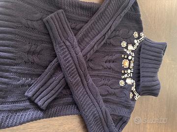 Maglione invernale a collo alto (dolcevita)di colore blu marca Max & Co.taglia M ,composizione 100 %lana a trecce con decorazioni di metallo sotto il collo.Mai indossato :condizioni ottime. Pesante quindi adatto alla stagione invernale più fredda ma grazie alle decorazioni molto chic quindi adatto ad essere indossato per apertivi o cene o anche occasioni speciali come per esempio teatro ecc..
