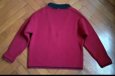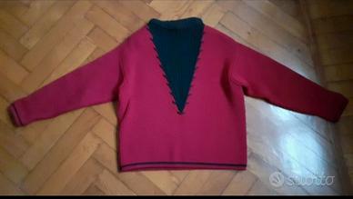 Maglione invernale donna già indossato. Ben tenuto. Buona vestibilità . Misura spalle: 50 cm, da ascella a ascella: 52 cm. lunghezza: 60 cm. Lana. Colore : bordeaux e nero.