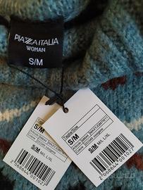 nuovo ancora con cartellino, piuttosto abbondante taglia S/M ma sembra una L/XL Da spalla a spalla 63 cm, da ascella ad ascella 60 cm ,Manica lunga 50, lunghezza del maglione 70 cm, lunghezza della parte dolce vita del collo 30 cm e si può avvolgere