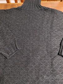 Maglione lana con 10% Alpaca. Morbido e caldo. Collo alto. Il tessuto in maglia è tutto lavorato, davanti, dietro e sulle maniche. Larghezza spalle 64 cm. Lunghezza maniche 46 cm, lunghezza 74 cm