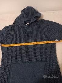 Vendo bellissimo maglione blu avio in lana e mohair,taglia S.Modello molto particolare con cappuccio. Made in Italy:collezione Flirt di Best Mode. Come nuovo. Lavato ed igenizzato pronto per essere indossato. Misure nelle foto. Spedizione in 24h. Per ulteriori info e foto contattatemi pure.