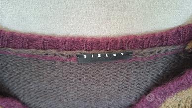 Maglione in lana usato marrone, beige e viola, marca Sisley.