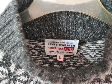 Maglione Levi's unisex con fantasia "norvegese" colore melange grigio, bianco, misto lana, taglia L, spalle cm.48, manica cm. 58, lunghezza cm.65 in ottime condizioni