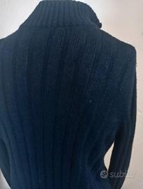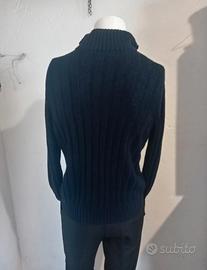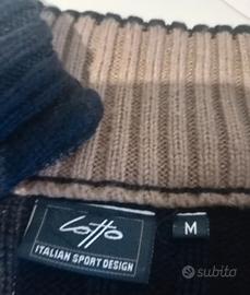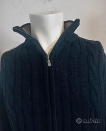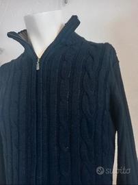 Maglione/cardigan uomo firmato Lotto – Italian Sport Design, taglia M. Produzione primi anni 2000 Colore blu scuro, lavorazione a trecce e coste verticali che dona un look elegante ma sportivo. Zip frontale completa Collo alto (stile dolcevita apribile) Vestibilità regolare Dettaglio logo applicato sul fianco Il tessuto è 100% acrilico, quindi resistente e facile da lavare. Condizioni ottime come lo stato di conservazione Perfetto per ogni stagione. Ideale sia casual che sportivo Misure Spalle 45 cm Torace 53 cm Lunghezza manica 62 cm Lunghezza totale 63 cm