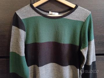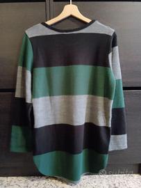 Maglione lungo a righe verde nero e grigio nuovo