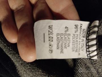 Maglione lungo a righe larghe nere, verde scuro e grigie nuovo, senza cartellino, mai indossato. Ha scollo arrotondato, davanti e dietro con bordo arrotondato e lunghezze differenti, in filato sintetico. Perfetto da indossare con leggins e jeans skinny. Taglia Unica, non c'è etichetta ma dalle misure dovrebbe vestire indicativamente una L. Le misure prese sul capo sono: spalle cm 38, da ascella ad ascella cm 46, lunghezza davanti cm 60, lunghezza retro cm 75. Vendo per acquisto taglia errata.