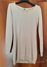Maglione lungo color panna-beige con pizzo dietro TG S/M