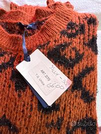 Maglione maculato, colazione nero e arancione scuro con dettagli in lurex,materiale viscosa 100% ITALIANO