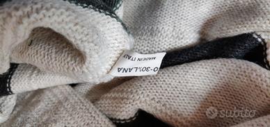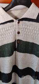 Vendo maglione Vintage colore Bianco con grandi righe orizzontali Verdi e grigie e 3 eleganti bottoni a chiusura collo. Capo, in perfetto stato e conservato pulito e senza odori di alcun tipo. Il Maglione è degli anni 2000-2005, ottima lavorazione e rifinitura made in Italy, Manca la taglia, ma potrebbe corrispondere a L-Xl, le misure di riferimento sono: Lunghezza (da collo a bordo inferiore) 71cm, Girovita (larghezza orlo inferiore) 51cm, circonferenza torace (da sottomanica a sottomanica) 66cm, manica 57cm, spalle 62cm peso circa 330gr,. Composizione 30% lana, 70% Acrilico. Sono disponibile alla spedizione con il servizio integrato di tuttosubito, per cui le eventuali spese di trasporto sono a carico acquirente, come di consueto, è un servizio davvero pratico e con dei buoni prezzi, basta simulare la proposta di acquisto per verificare.