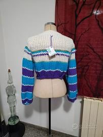 Maglioncino donna corto realizzato a mano all'uncinetto, in caldo acrilico top Qualità italiana..taglia S/M ..maniche leggermente a sbuffo ed elastico in Vita.