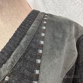 Maglione in lana e acrilico grigio scuro con inserti in pelle Taglia L Unisex Spalle cm 54 torace cm 60 lunghezza cm 70