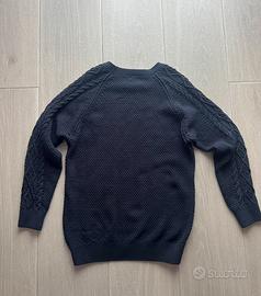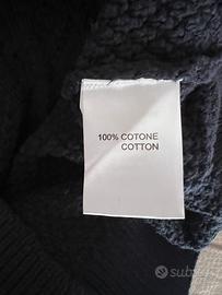 Vendo maglione marca Doppelganger di colore blu, con ricami a trecce, taglia Xl, materiale 100% cotone. - Lunghezze: Maniche 53cm; Torace 49cm; - Lunghezza busto 73cm. - Modello: girocollo con ricami a trecce. - Materiale: 100% Cotone