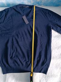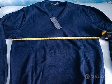maglione nuovo morbidissimo colore blu, 10% cachemire, 40% merinos, 25% viscosa, 25% nylon, con etichetta e confezione originale