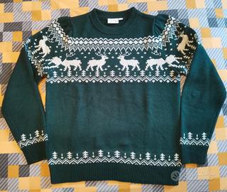 Maglione natalizio verde con disegni bianco caldo. Materiale sintetico caldo. Taglia S (veste morbido). Usato 2 volte.