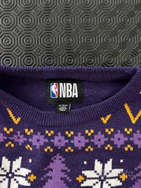 🔥 Maglione natalizio a tema Los Angeles Lakers. Presenta un design a tema invernale con fiocchi di neve e alberi.