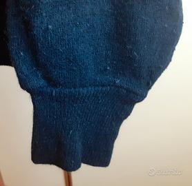 Maglione donna già indossato. Senza etichette. Misura spalle: 45 cm, lunghezza: 48 cm. Maniche a pipistrello, colletto con cuoricino in plastica. Colore: nero.