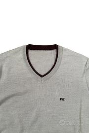 Maglione Nero Giardini da uomo taglia 50, colore grigio. Presenta un discreto logo ricamato sul petto, made in Italy. -Scollo a V con borgo a contrasto. -Polsini e fondo a costine. -Tessuto leggero e confortevole.