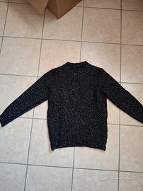 Maglione nero da uomo con fili bianchi, in lana e poliammide. Marchio Daniele Alessandrini. In ottime condizioni, indossato poco. Taglia M.