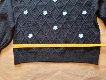 Maglione girocollo con un motivo a rombi e applicazioni floreali.
