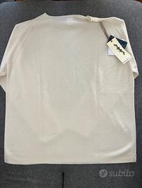 Vendo il maglione delle foto, nuovo mai indossato con ancora il cartellino (si tratta di un regalo, purtroppo la taglia è sbagliata). Maglione in preziosa lana Gatto al 100%. Filato sottile morbidissimo. Per le misure precise vedere le ultime foto. Prezzo (solo leggermente) trattabile.