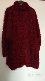 Maglione lungo / o vestito corto collo alto pelusciato e brillantinato ,sfondo nero e rosso scuro ottimo tessuto invernale ,taglia unica ma veste bene da una S a una XL .