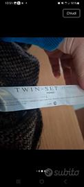 Bello simpatico il maglione Twinset taglia L ma veste over con collo alto nero ,copre il sedere con,spacchi , fantasia cuoricini maniche a righe ,indossato poco ben tenuto