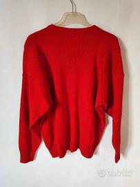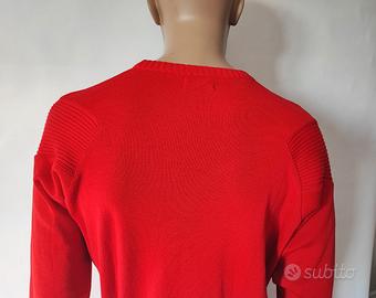 Maglione girocollo uomo rosso, lavorato con pannelli a coste sulla parte superiore e sulle spalle, manica raglan, logo davanti, misto lana/acrilico, stile Yachting, made in Italy, taglia M, spalle cm.45, manica cm.67, lunghezza cm,64 in perfette condizioni.