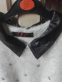 Maglione peloso bianco con pois neri, colletto nero in ecopelle asportabile taglia M in ottime condizioni