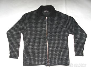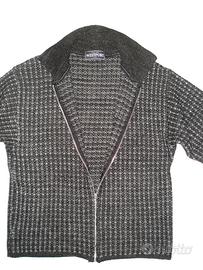 Famiglia privata vende come usato in ottime condizioni, un soffice maglione pesante con grossa cerniera in metallo sul davanti, WESTPORT originale, in misto lana, colore base: varietà di grigi mélange. Il colore dominante di questo raffinato capo di maglieria vintage dei primissimi Anni '90, è il colore grigio mélange che varia in diverse tonalità di filati di lana grigi, lavorati tutti insieme per dare morbido spessore al tessuto che risulta così caldissimo. Come colore base, si parte dal color grigio antracite più scuro, passando per altre tonalità e per finire al colore grigio perla, qusi bianco, che dona così, a questo capo eleganti “tocchi di luce”. Articolo unicamente per Uomo, taglia L-XL (LARGE); composizione del tessuto: 50% Lana - 50% Acrilico (Made in Italy). Descrizione: Questo maglione dà una vestibilità regolare e assai comoda con la sua peculiare linea, ideale sia come linea classica; ma, anche casual. Esso è aperto sul davanti da una robusta cerniera metallica color argento. Trattasi di un pesante maglione in misto lana, morbidissimo, soffice e caldo: davvero molto confortevole e, contemporaneamente, lavorato a più filati di lana sovrapposti, in diverse tonalità di grigi; per finire dall'attaccatura di un lungo colletto reversibile (tipo polo), sempre in tinta, ma di una tonalità molto scura. La sua lavorazione a maglia è rasata, ma, con alcuni punti doppi sovrapposti, più lunghi degli altri di base e finemente operati. Elegante capo di maglieria maschile, presenta un'attaccatura delle maniche bassa (scalfo basso), le maniche sono entrambe tubolari e senza polsino ristretto. Questo bel maglione pesante è stato usato pochissimo e sempre tenuto con estrema cura. Dimensioni della maglia in centimetri (tenendola morbida):Circonferenza totale collo interno, 62; Altezza del colletto, 11; Larghezza spalle dietro, 50; Lunghezza manica dietro, 59; Lunghezza totale dietro, 70; Lunghezza del fianco, 39; Circonferenza torace, 111. Peso: gr. 650 circa.