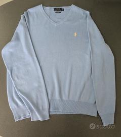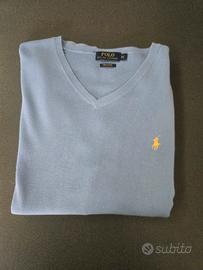Maglione Polo Ralph Lauren originale, modello con scollo a V in una raffinata tonalità di azzurro polvere/celeste.