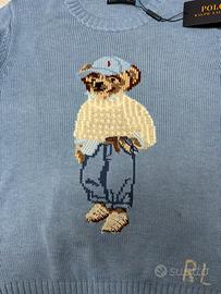 Maglione Polo Ralph Lauren azzurro con orso elegante ricamato in cotone taglia S/M da donna
